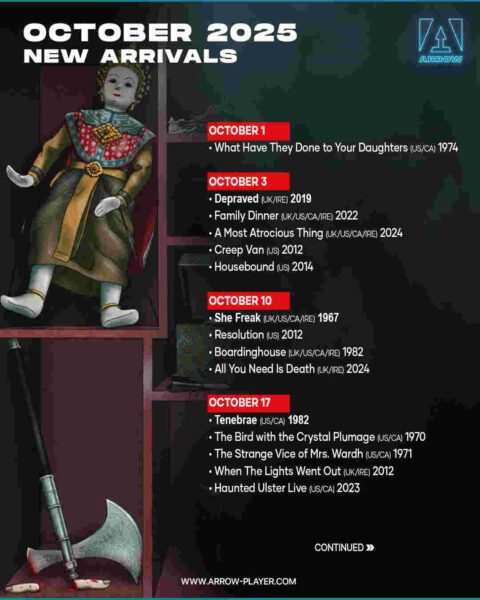 Arrow SVOD has announced its streaming lineup for October 2025.
