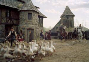 As the brothers evolve from opportunistic charlatans to reluctant heroes, Gilliam mirrors the historical transformation of the Grimms’ real-life work. What began as the simple collecting of folktales became a vital project of cultural preservation during the French occupation of German states. Folklore was no longer “just stories,” it became a weapon against cultural erasure. The brothers’ journey from frauds to believers echoes this shift: they accept the truth of the tales, and in doing so, claim their role as defenders of culture. The Grimm Fairy Tales were seen as a symbol of unity in a broken Germany that was under the rule of French occupation.