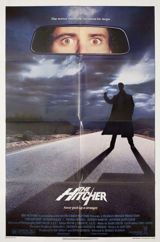 The Hitcher is screenwriter Eric Red (Near Dark, Body Parts)’s first feature film. It is also Director Robert Harmon (They, Nowhere To Run)’s feature debut. The film stars C. Thomas Howell (Red Dawn, Beast Mode), Rutger Hauer (Blade Runner, Split Second), and Jennifer Jason Leigh (Single White Female, The Hateful Eight).